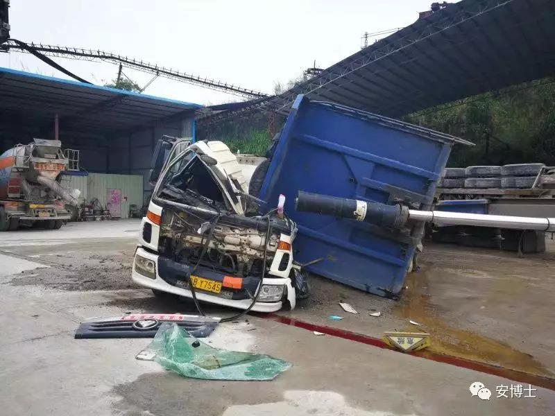 10月25日6:38,深圳市一建筑搅拌站内一沙土自卸车在卸沙过程中发生侧翻,压倒在旁边的油罐车,导致油罐车驾驶室内司机当场死亡。