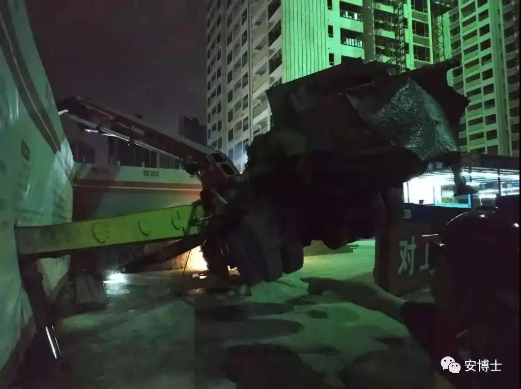 11月18日0点14,深圳市某工地混凝土泵车发生侧翻,泵臂砸中两名作业工人,事故造成1死1伤。