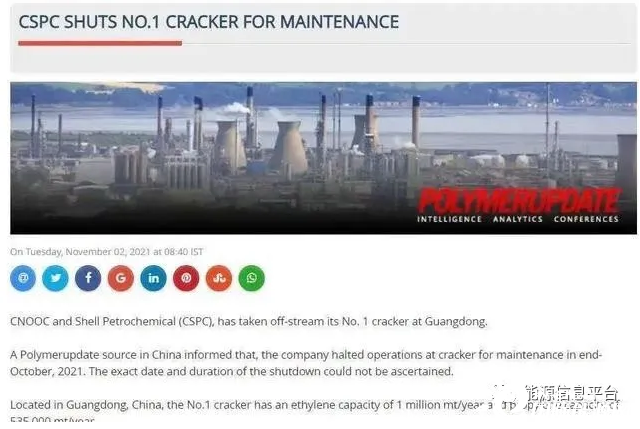 据报道,11月1日,石油化工生产商壳牌(Shell)其位于普劳布库姆(PulauBukom)的裂解炉因技术问题发生火灾!