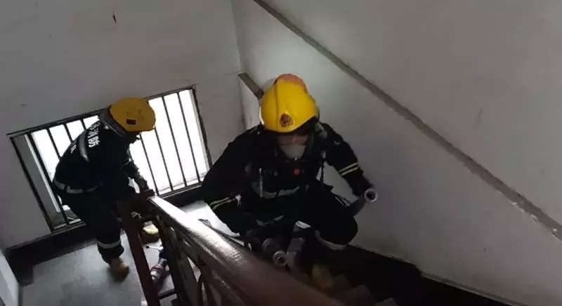 消防队员到场后,立即带上面罩查看现场。经过勘查发现,起火部位为四层厨房,着火物质为厨房杂物与厨房木质家具。由于厨房内的煤气罐随时都有爆炸的可能性,现场指挥员当即下令,立即疏散周围围观的群众,以免造成人员伤亡。随后,消防队员们立即拿出2支水枪从门口对火势进行打击,随后消防员顶着烟雾冲进了厨房,将厨房内的煤气罐拎到室外安全区域,经过近40分钟的紧张处置、散烟,现场明火被全部扑灭。
